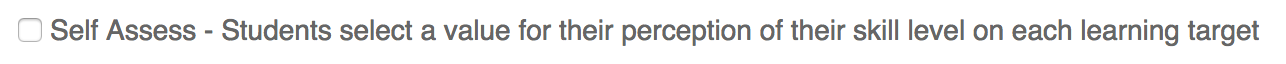 For an assignment, teachers can ask students to complete a rubric-based self-assessment. This is configurable, if targets and rubrics have already been selected. Students can write descriptions of their performance, and select a level on the rubric.